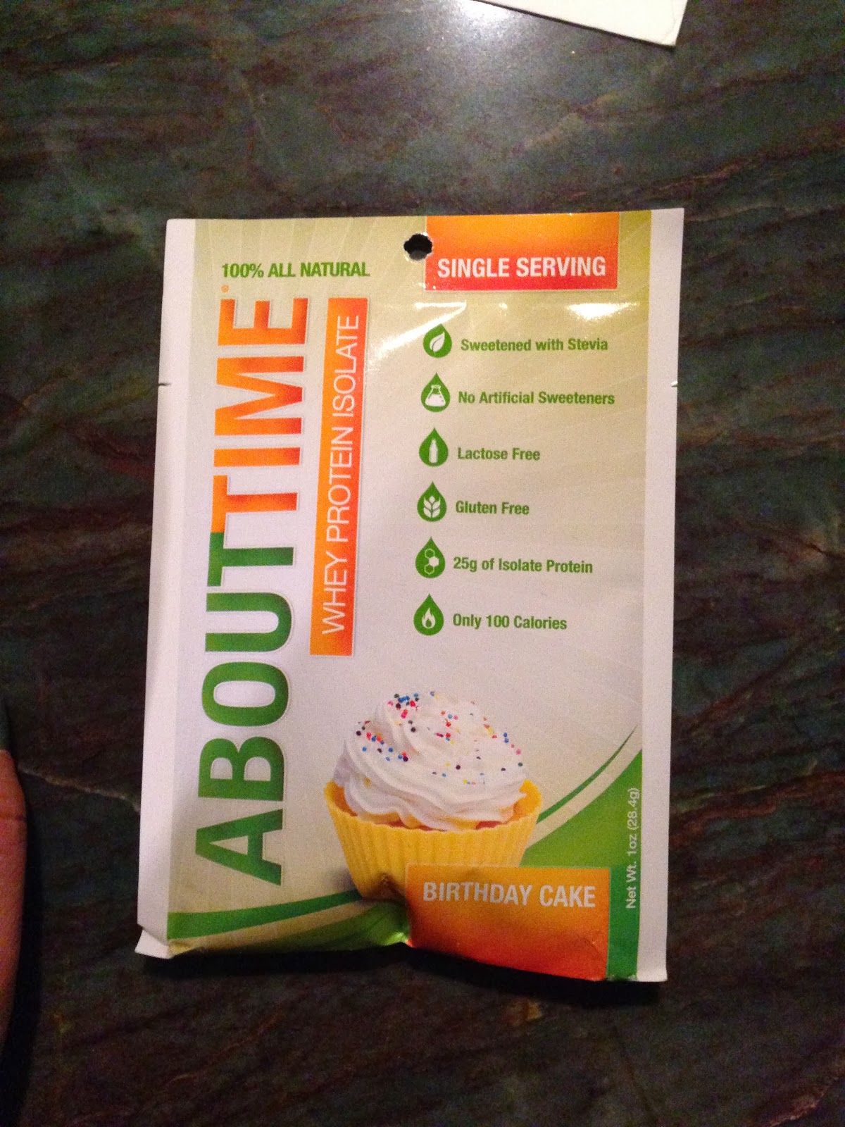Next up is a protein powder. I haven't actually tried it yet, but it's birthday cake flavor, so how could that not be awesome? Get it? Birthday cake flavor for their birthday! Cute, Stridebox, cute.